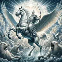 Now I watched when the Lamb opened one of the seven seals, and I heard one of the four living creatures say with a voice like thunder, “Come!” 2 And I looked, and behold, a white horse! And its rider had a bow, and a crown was given to him, and he came out conquering, and to conquer.